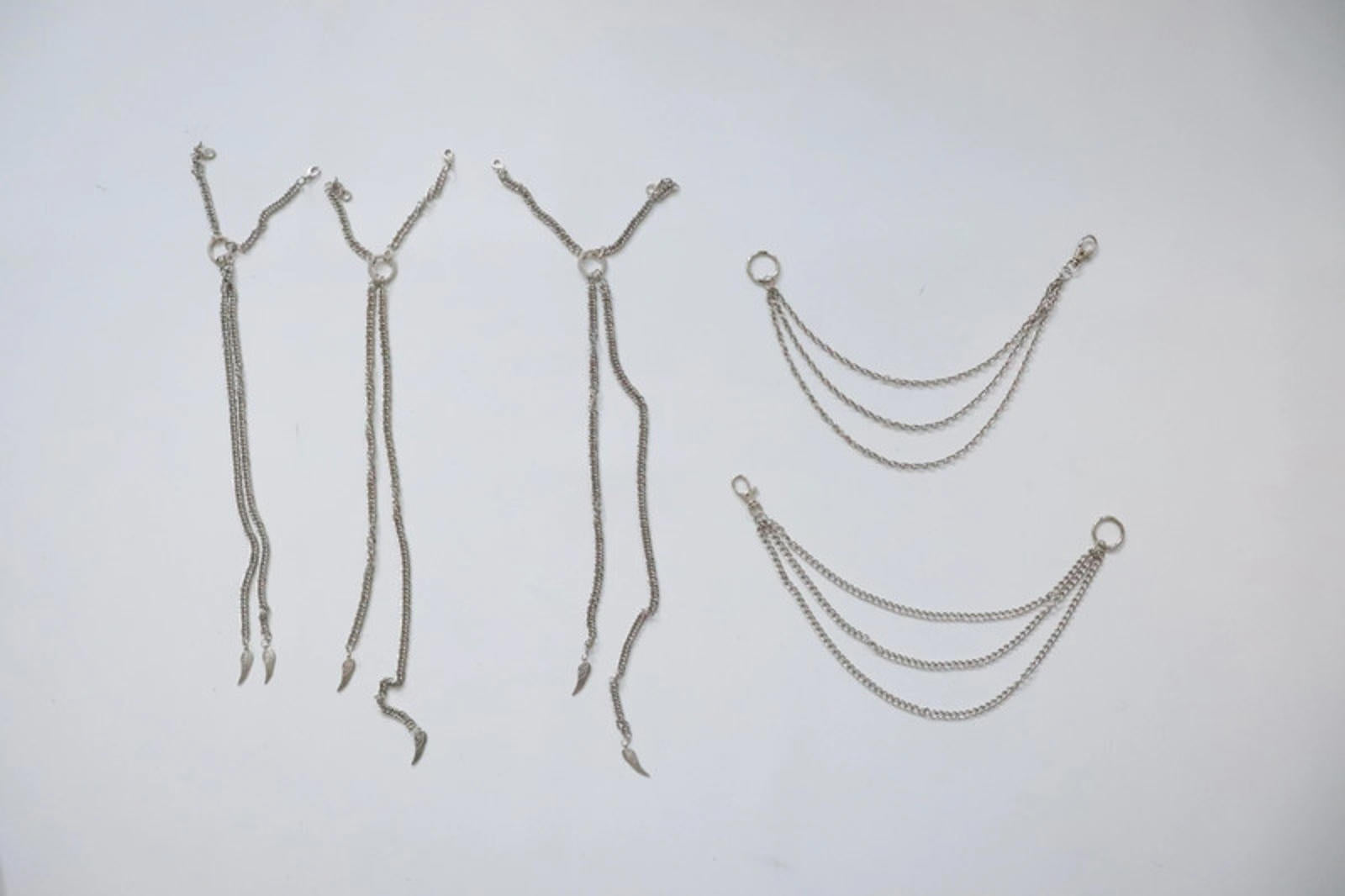 small wing charm on the long chain, with lobster clasps to attatch to bag, clothing