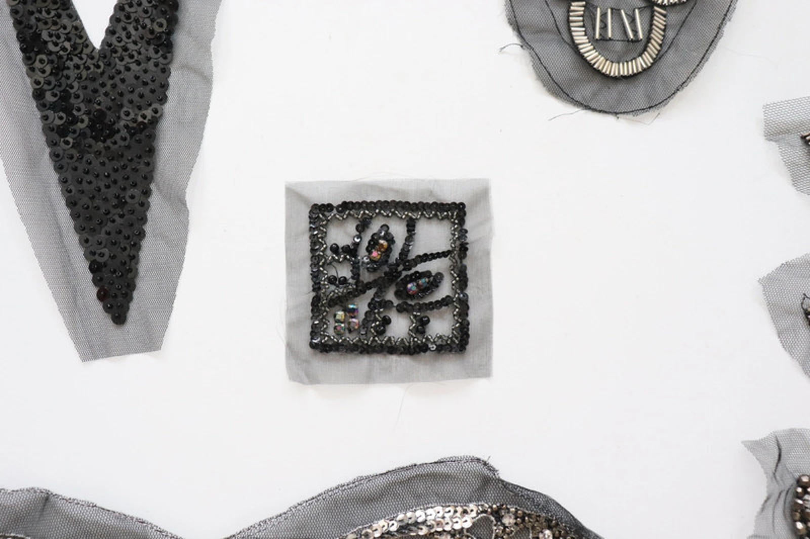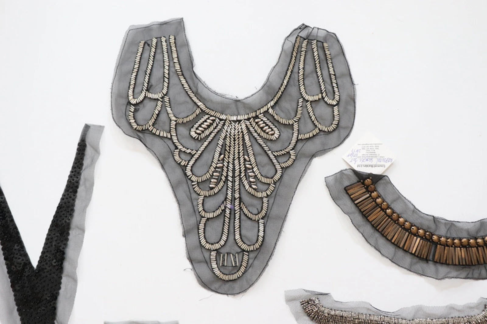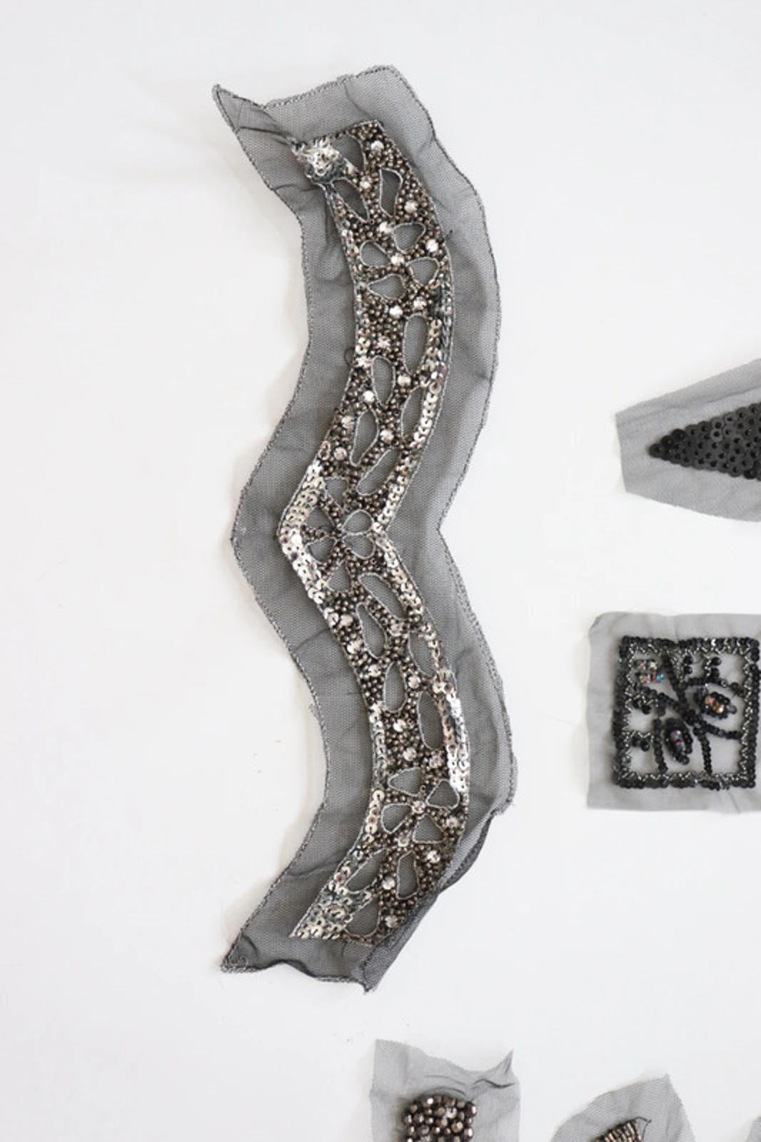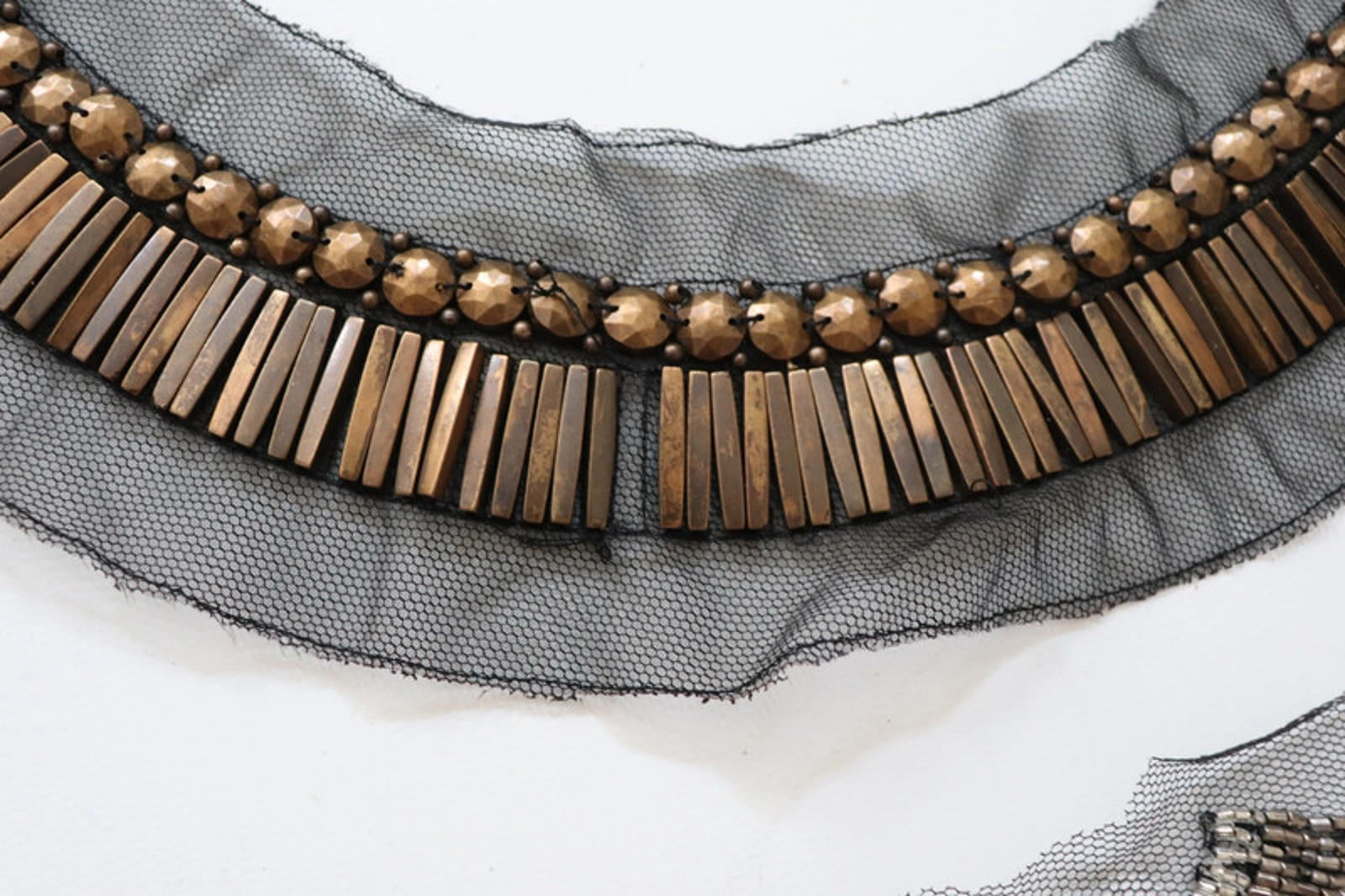 black and gold mix of lace neckline collar back trim, applique insert , beaded and sequins- craft sewing clearout, perfect for goth, diy, alt fashion