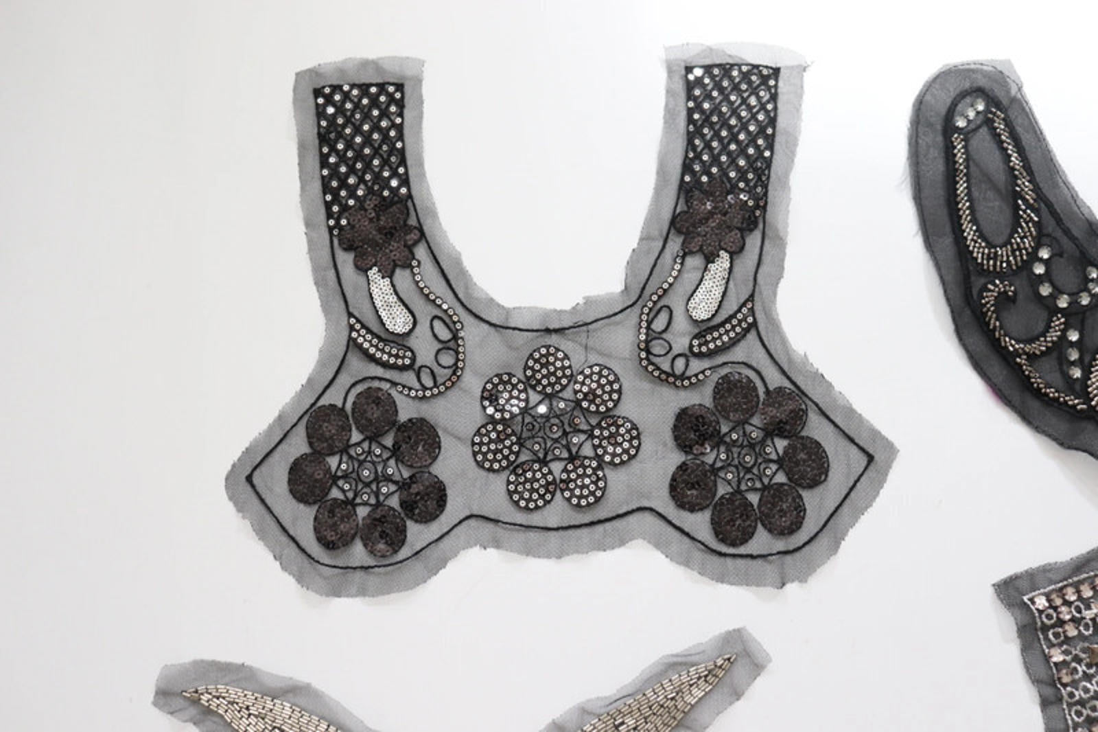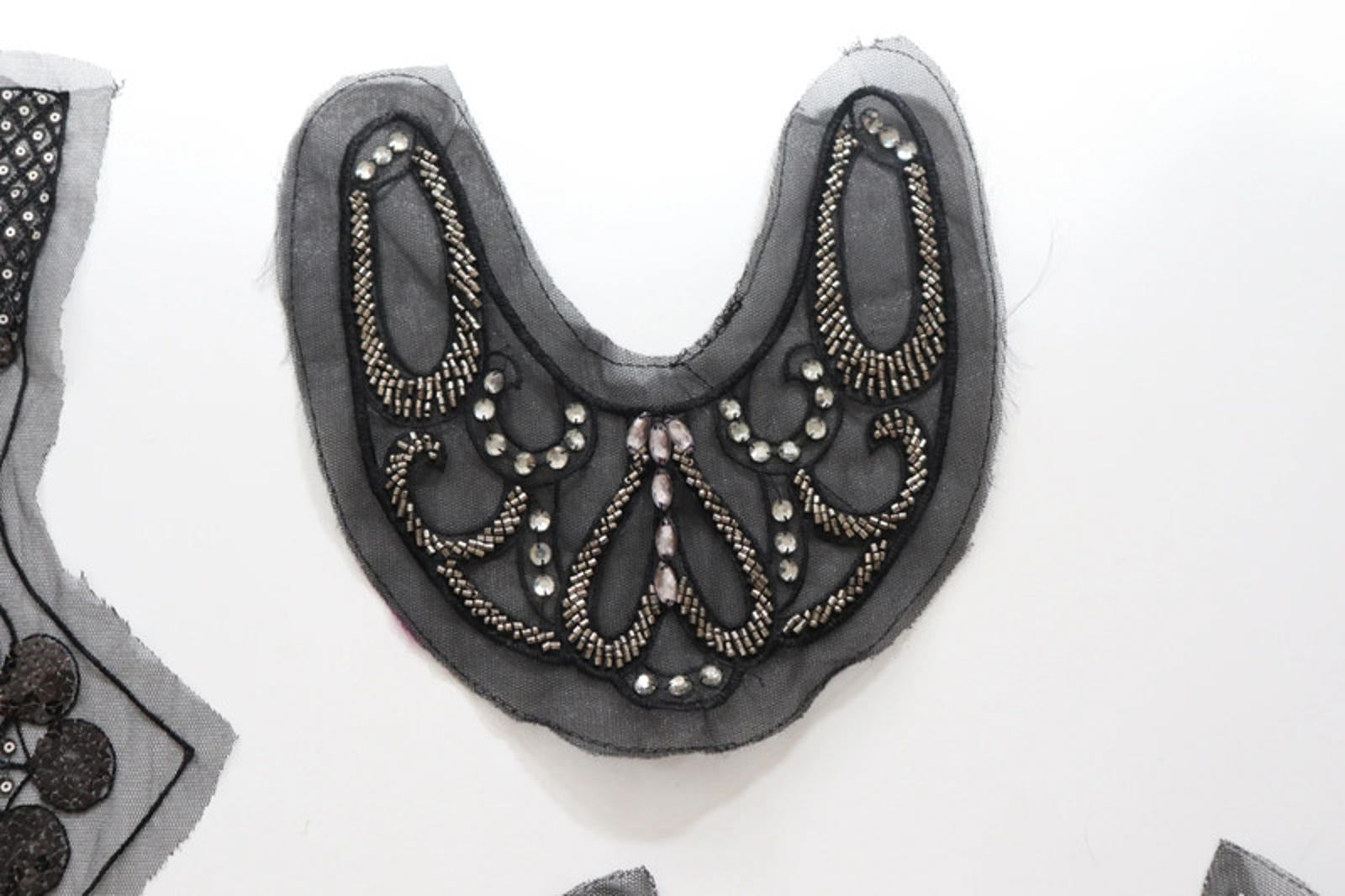 Black mix of lace neckline collar back trim, applique insert - craft sewing clearout, perfect for goth, diy, alt fashion