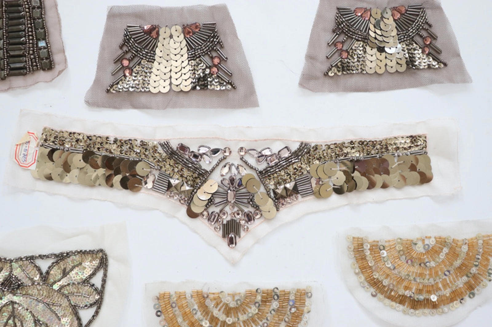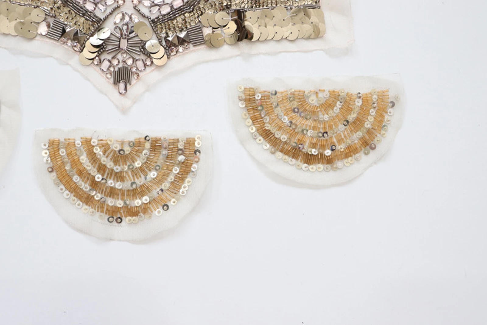 brown, cream gold mix of lace neckline collar back trim, applique insert , beaded and sequins- craft sewing clearout, perfect for goth, diy, alt fashion