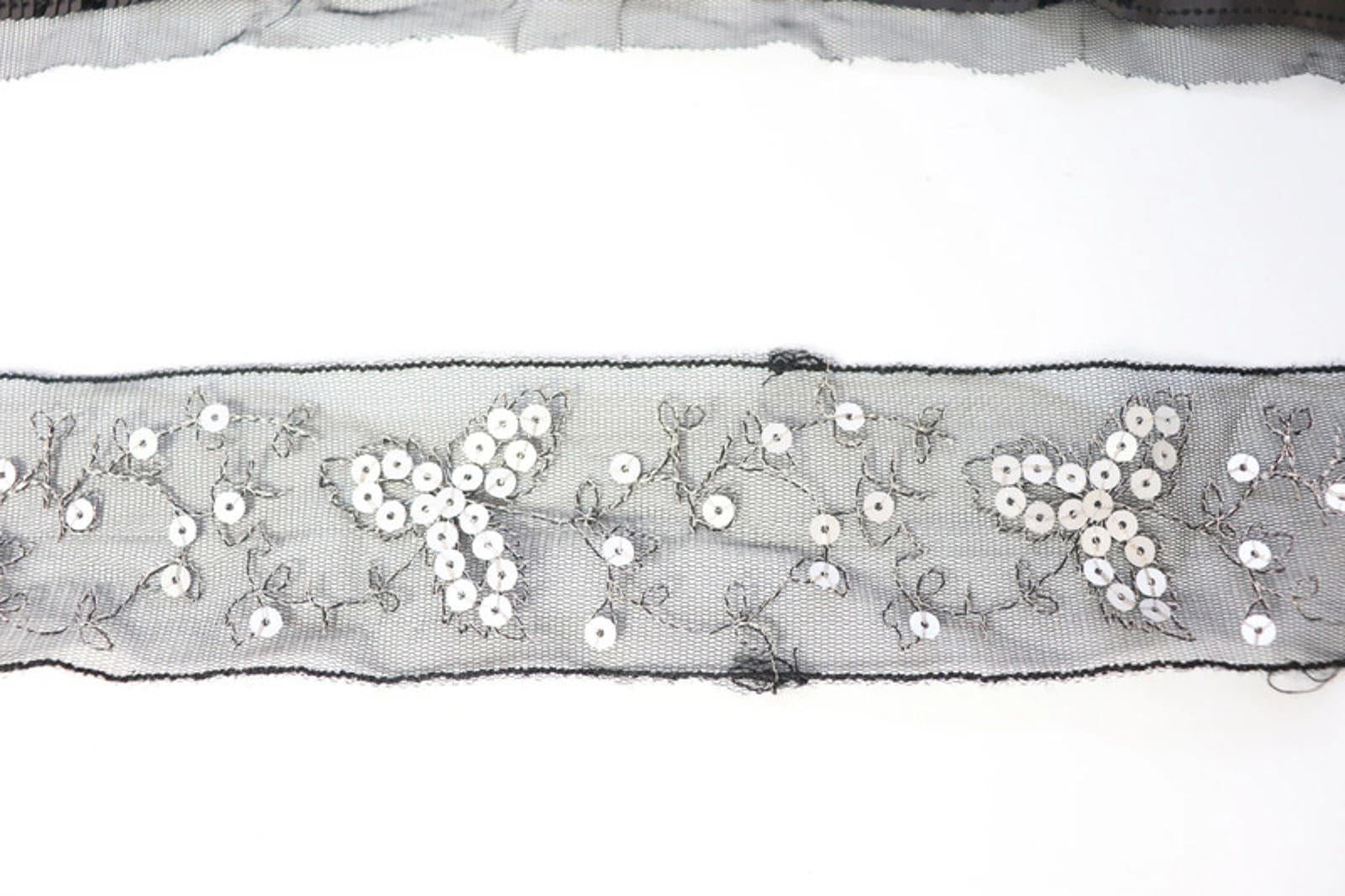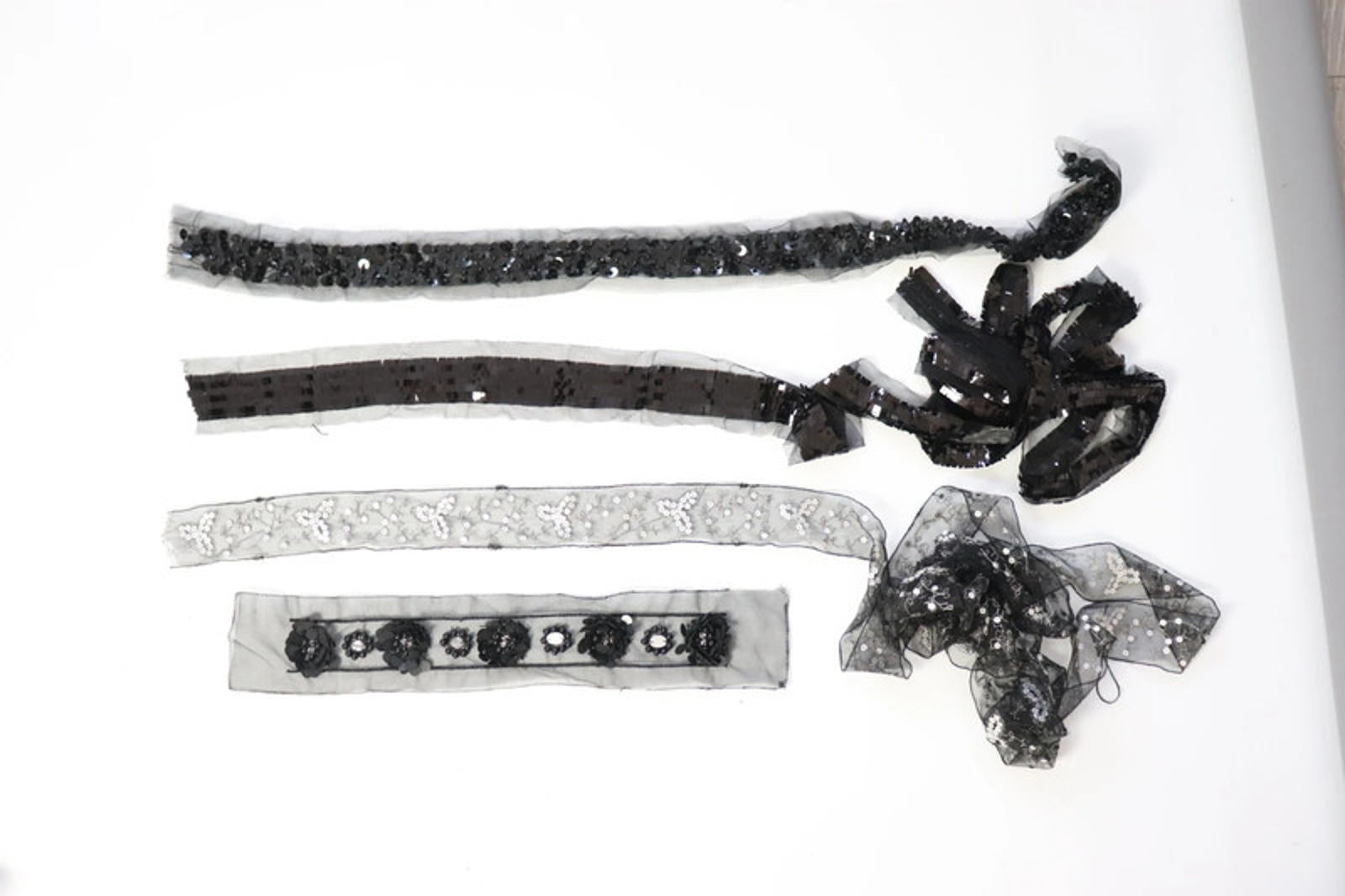 bundle x 4 beaded/ sequin trim. mesh and chiffon back- sewing into neckline, edge
