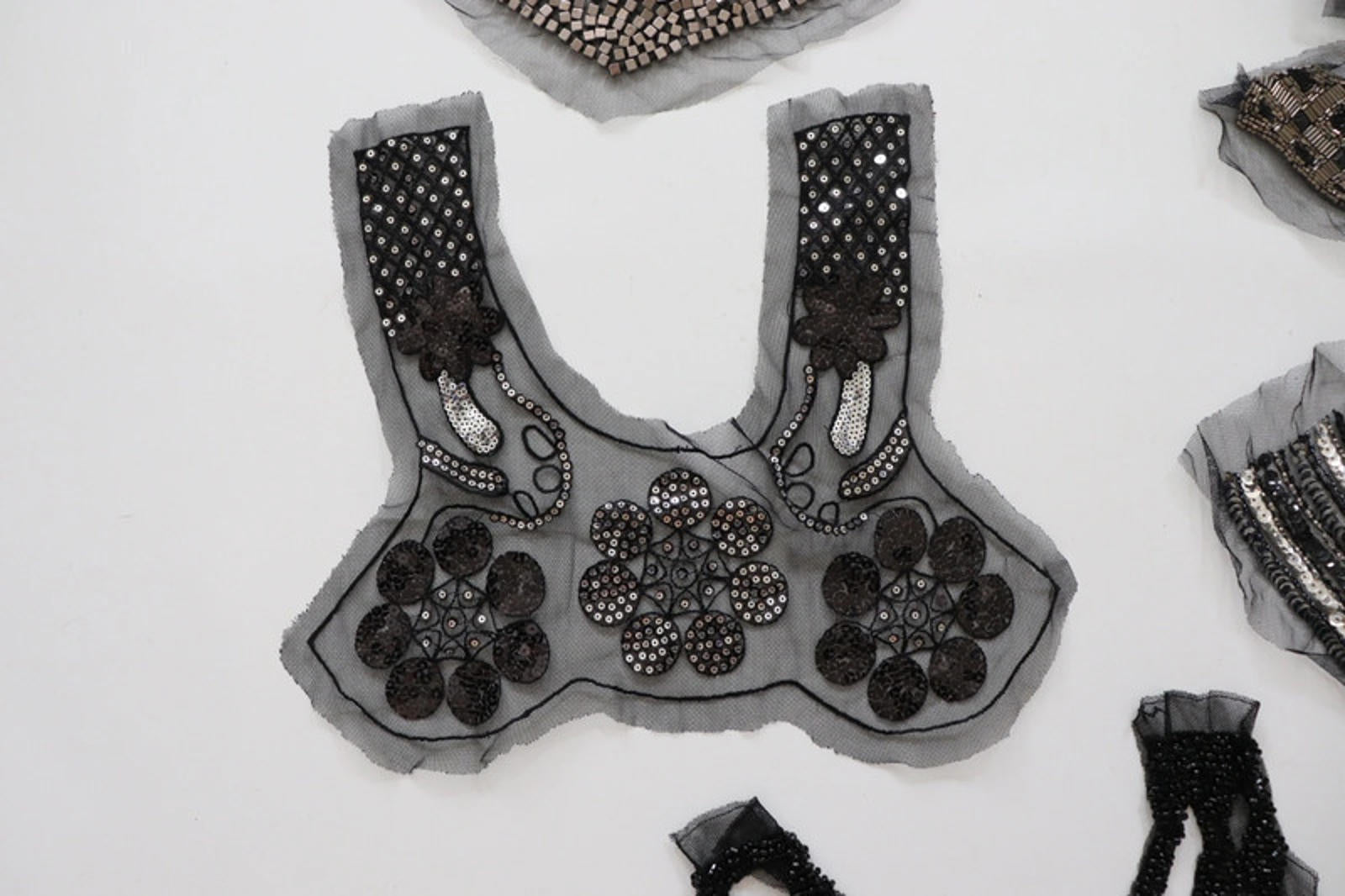 Black mix of lace neckline collar back trim, applique insert - craft sewing clearout, perfect for goth, diy, alt fashion