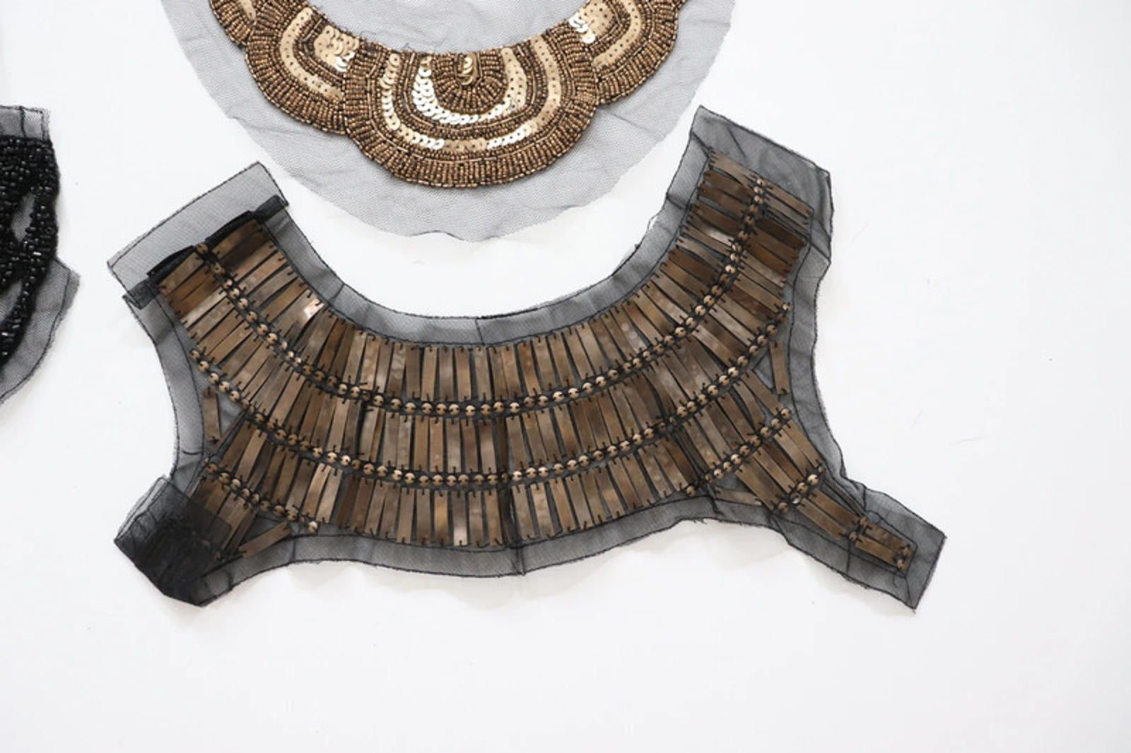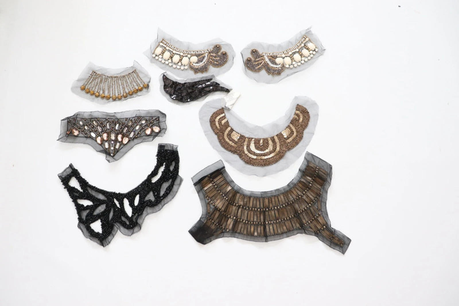Black mix of lace neckline collar back trim, applique insert , beaded and sequins- craft sewing clearout, perfect for goth, diy, alt fashion
