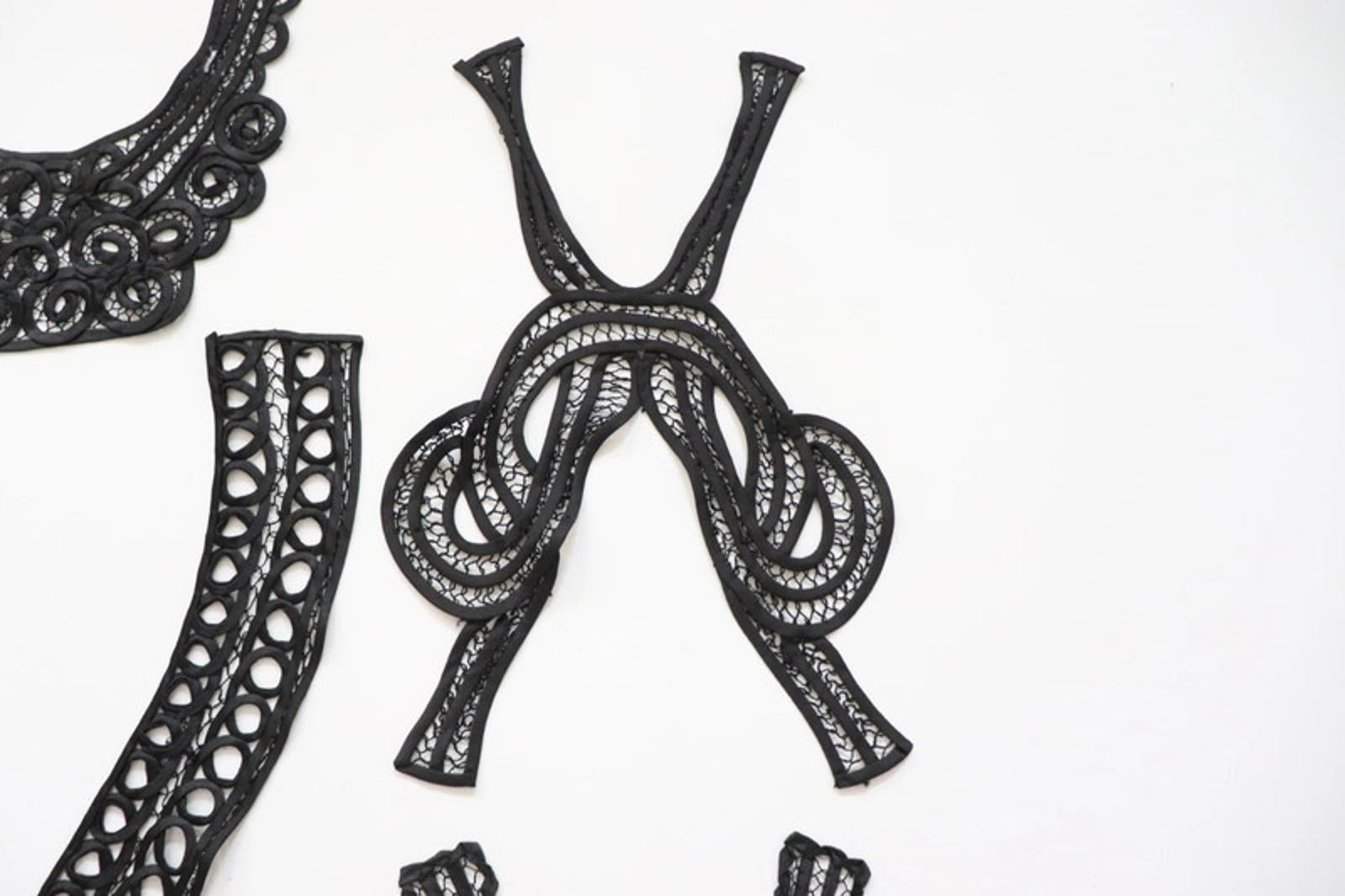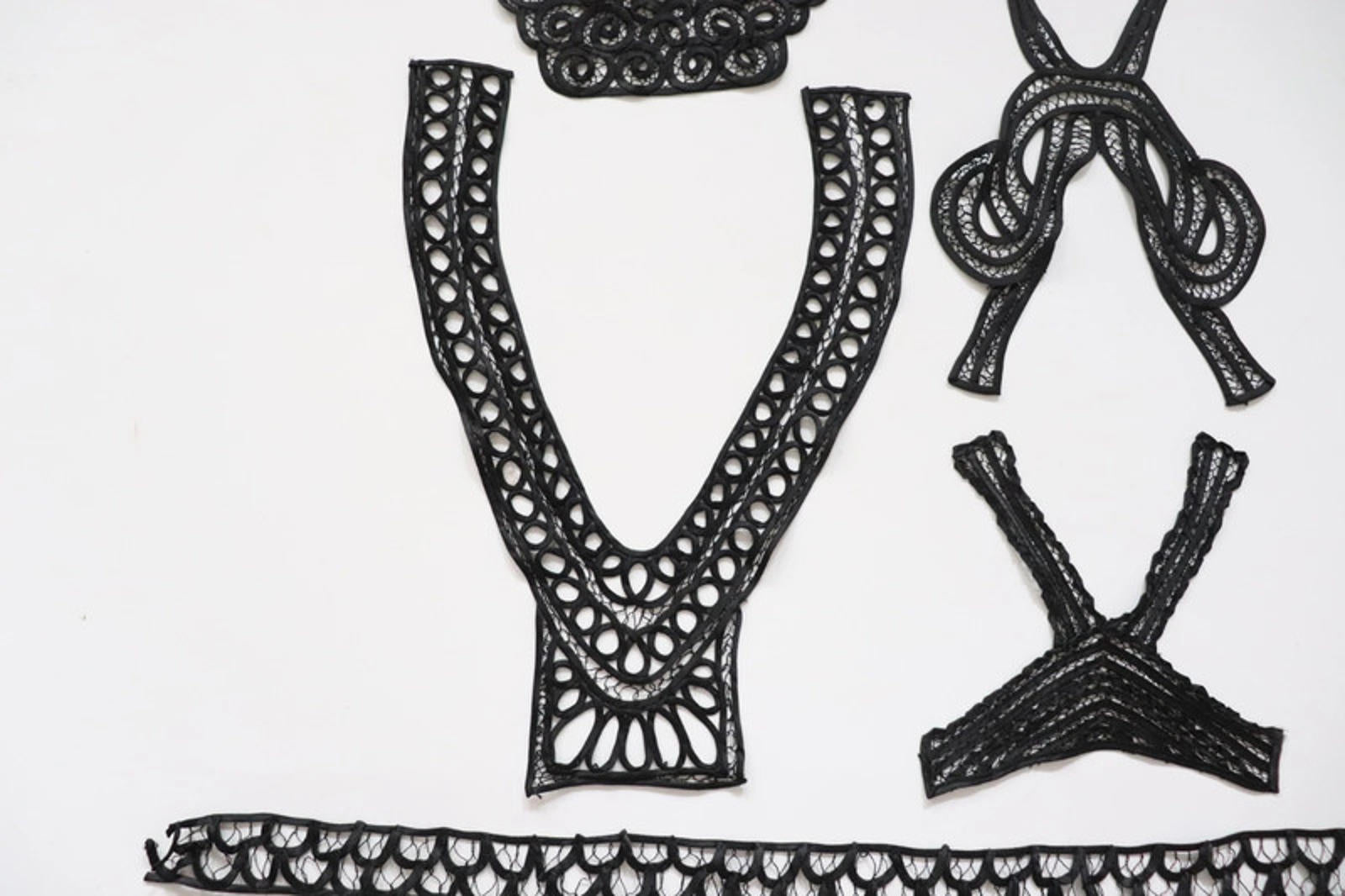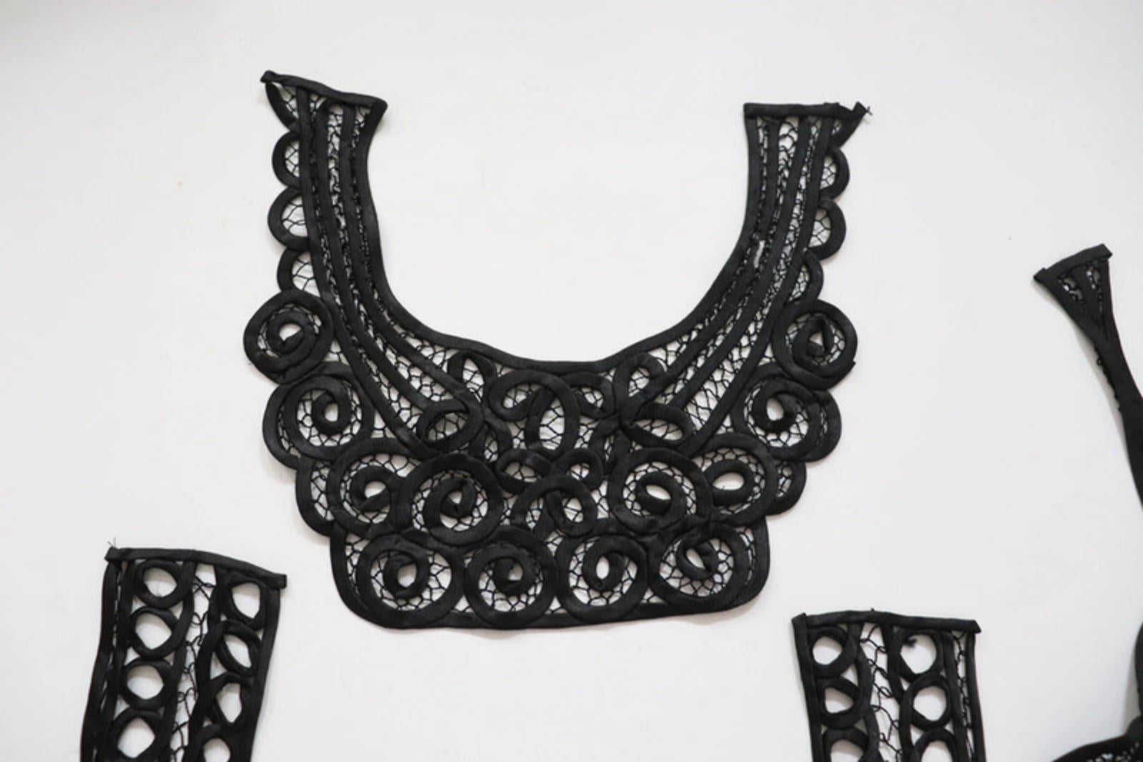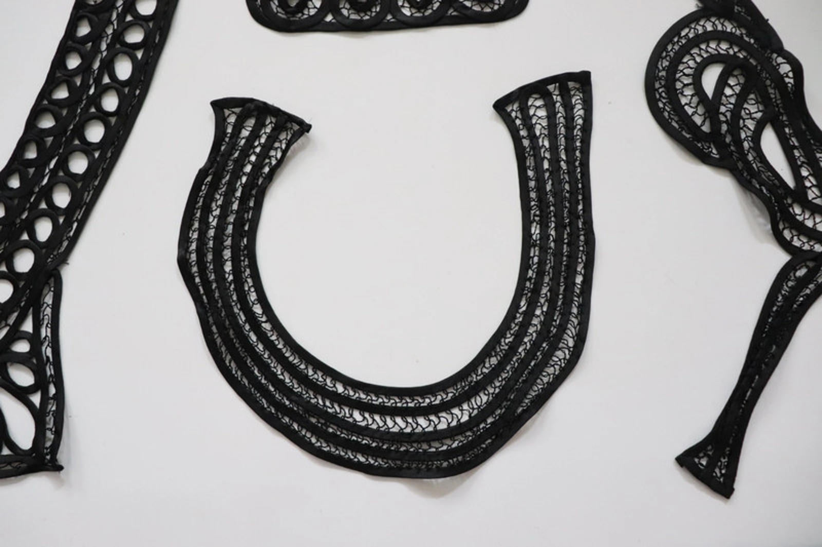 black satin cornelli style trimneckline collar back trim, applique insert , - craft sewing clearout, perfect for goth, diy, alt fashion
