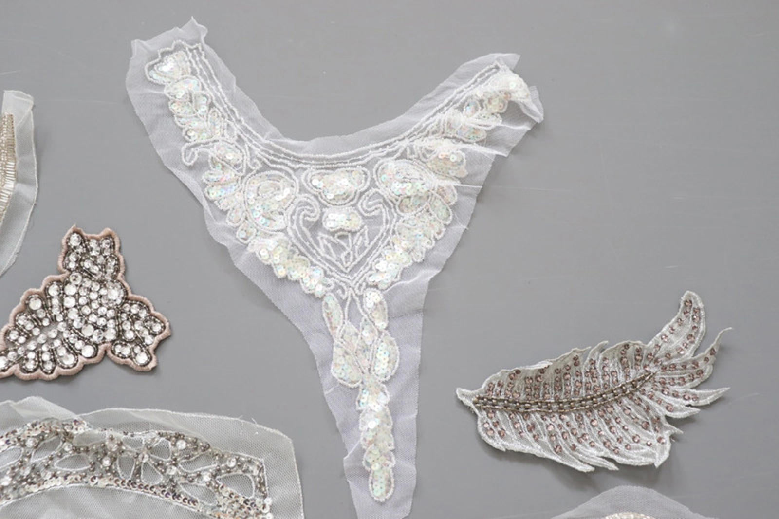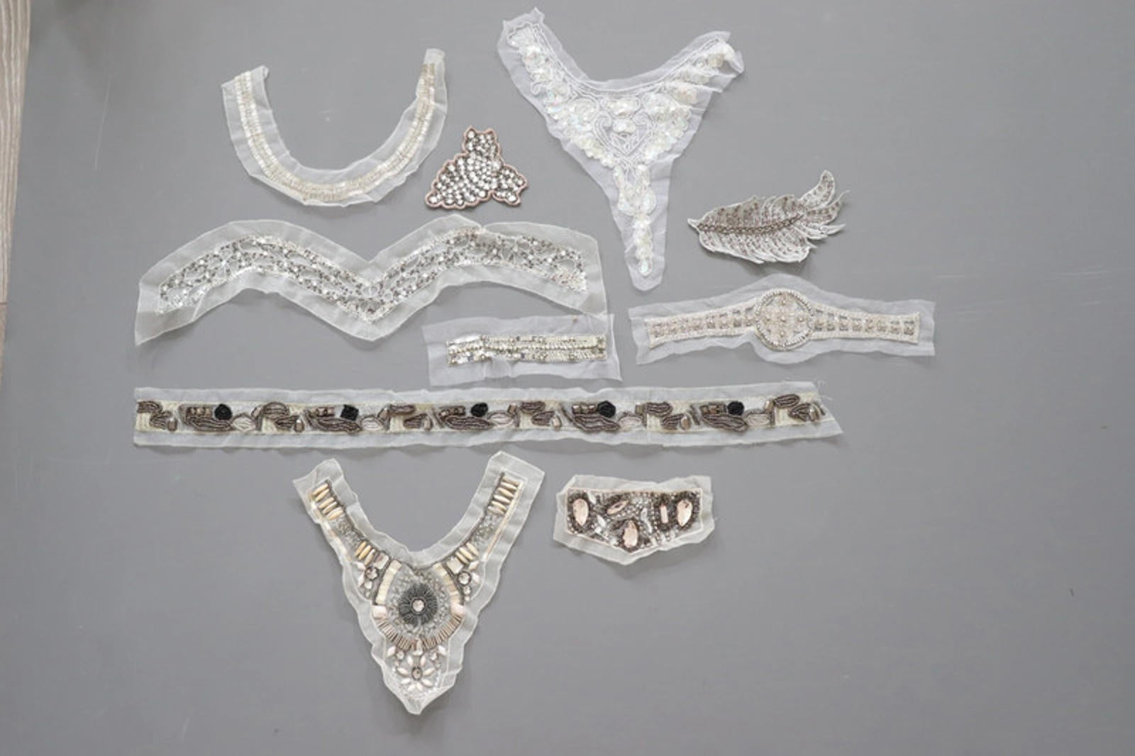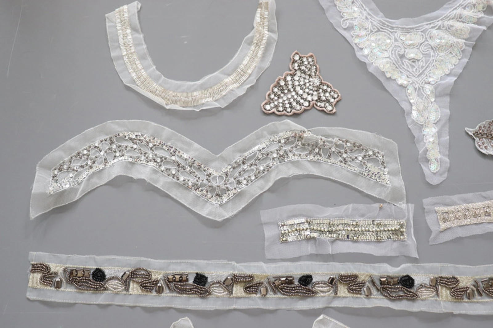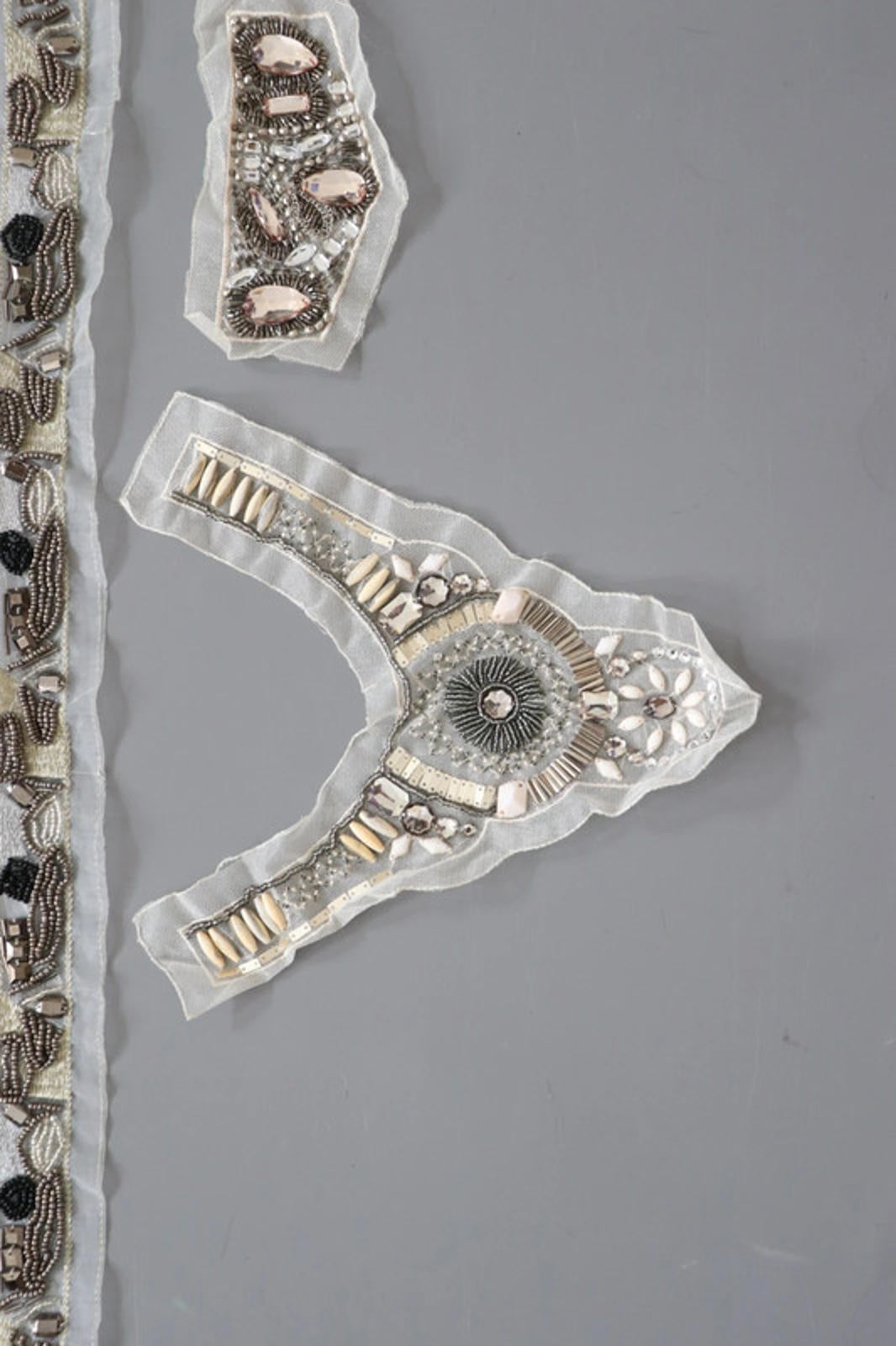 white, cream, off white mix of lace neckline collar back trim, applique insert , beaded and sequins- craft sewing clearout, perfect for goth, diy, alt fashion